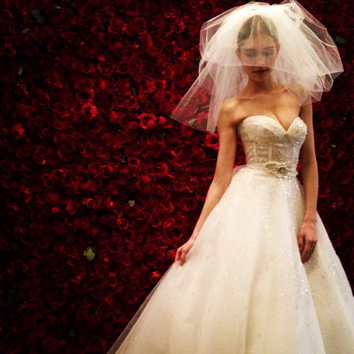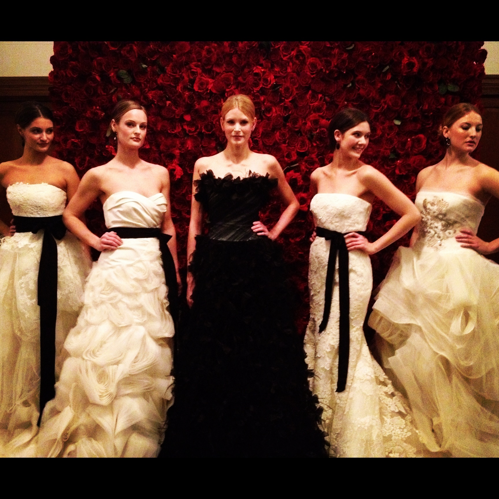Here are some pictures of Engage and a video segment of the fashion show featuring Vera Wang dresses and a breath-taking black Romona Kerveza wedding gown.